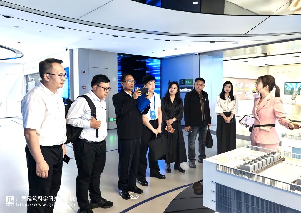 东盟信息港,该项目是我院顾涛书记领衔实施的建筑师负责制全过程咨询项目,承载着中国—东盟数字互联互通的重要使命。我院相关负责人向代表团详细介绍了项目的规划布局、建筑设计理念、建设运营成效,以及其在推动中国与东盟信息互通、深化数字经济合作中的重要作用,重点分享了建筑师负责制在项目全过程中的实践经验与应用成果。代表团认真听取介绍,不时驻足交流提问,对项目的建设品质与战略意义给予充分肯定,认为其为东盟国家数字城市建设提供了有益借鉴。