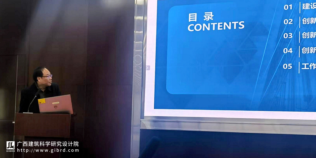 李杰成代表我院作了创新中心(广西)2025年度工作总结报告。他系统总结了创新中心(广西)2025年度在创新平台建设、科研与标准工作成果、乡村振兴建设质量技术服务、建设行业技术支撑等方面的主要工作进展与成果。重点介绍了我院在工程质量检测与评定、乡村振兴建设质量技术服务领域的创新实践,以及为推动区域建筑业高质量发展所作出的积极贡献。