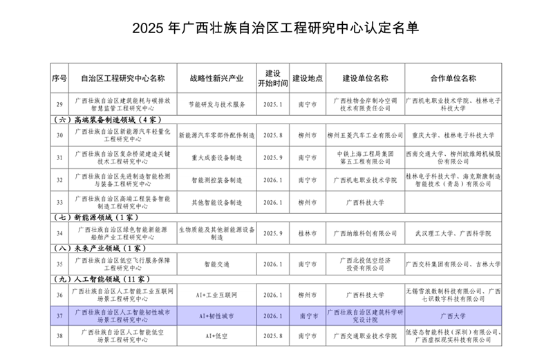 近日,由我院牵头,联合广西大学共同申报的“广西壮族自治区人工智能韧性城市场景工程研究中心”成功入选2025年广西壮族自治区工程研究中心名单。这标志着我院在推动人工智能与韧性城市建设深度融合领域迈出关键步伐,将为我区城市安全韧性提升提供强有力的技术支撑与产业赋能。