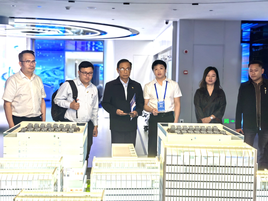 东盟信息港,该项目是我院顾涛书记领衔实施的建筑师负责制全过程咨询项目,承载着中国—东盟数字互联互通的重要使命。我院相关负责人向代表团详细介绍了项目的规划布局、建筑设计理念、建设运营成效,以及其在推动中国与东盟信息互通、深化数字经济合作中的重要作用,重点分享了建筑师负责制在项目全过程中的实践经验与应用成果。代表团认真听取介绍,不时驻足交流提问,对项目的建设品质与战略意义给予充分肯定,认为其为东盟国家数字城市建设提供了有益借鉴。
