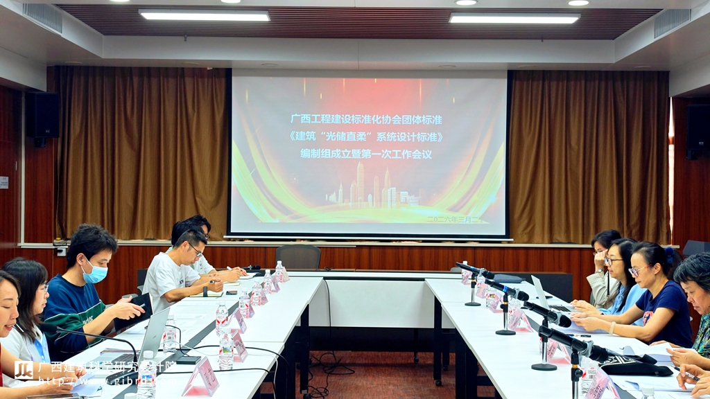 2026年3月27日,广西工程建设标准化协会团体标准《建筑“光储直柔”系统设计标准》编制组成立暨第一次工作会议在我院顺利召开。我院作为核心主编单位,牵头启动这项填补区域技术标准空白的重要工作,以标准创新驱动建筑领域绿色低碳转型,推动建筑能源利用高效变革。