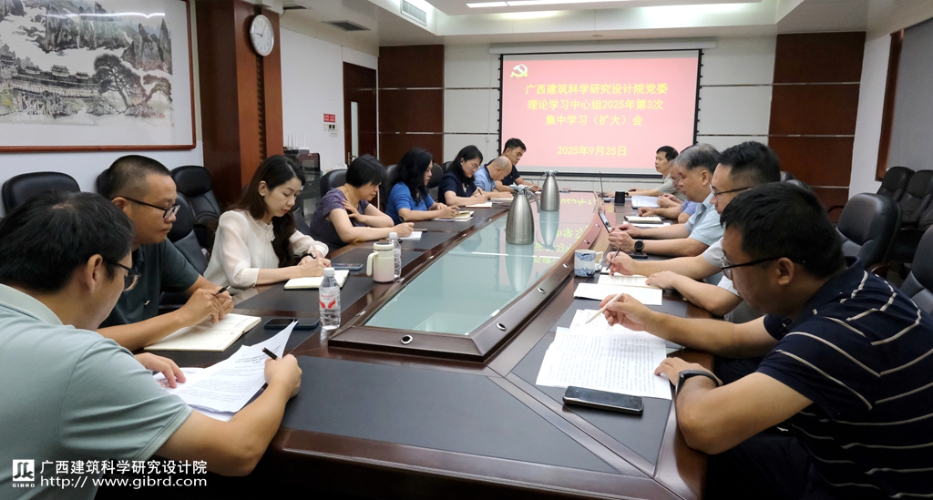 9月25日,我院召开党委理论学习中心组2025年第3次集中学习(扩大)会。会议以“深入学习贯彻习近平总书记关于广西工作论述的重要要求和习近平经济思想,聚焦‘创新驱动推动建筑行业高质量发展’”为核心主题,立足我院专业技术优势,深入研讨服务广西建筑业转型升级的实践路径与责任担当。院党委副书记、院长顾涛主持会议并讲话。院领导唐植正、庞耀国、李华红、潘利,党委委员、各党支部书记及相关管理部门负责人参加会议,共同为推动行业高质量发展凝聚思想共识、擘画行动蓝图。