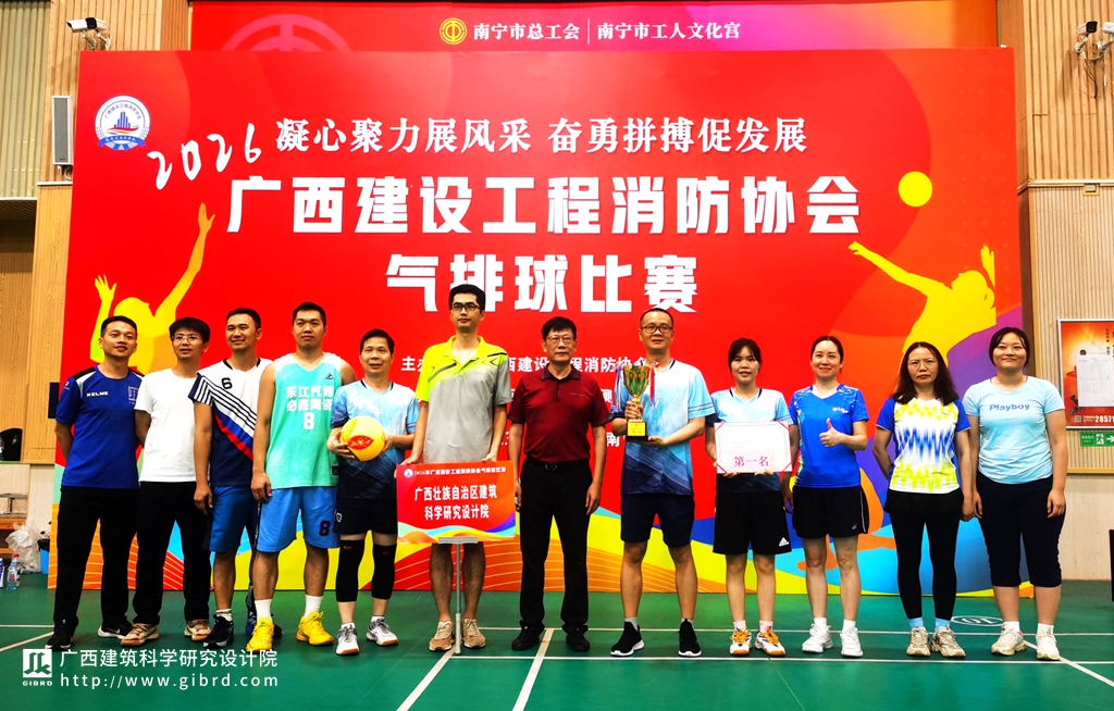 为丰富行业职工精神文化生活,凝聚行业发展合力,搭建同行交流互动平台,3月31日,2026年广西建设工程消防协会气排球比赛在南宁市工人文化宫球馆顺利举行。本次赛事吸引了行业内12支队伍同台竞技、切磋球技,我院代表队凭借默契的团队协作、顽强的拼搏精神,一路过关斩将、奋勇争先,最终勇夺比赛冠军,充分展现了我院职工昂扬向上、敢打敢拼的良好精神风貌。